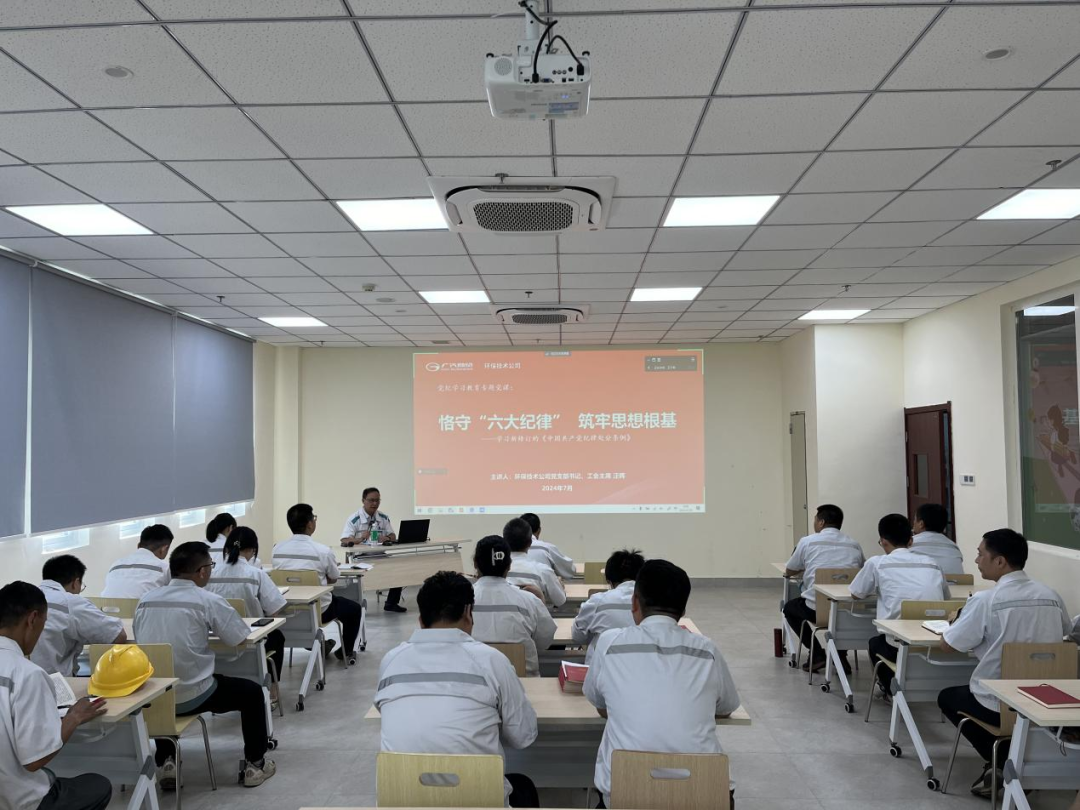 為強(qiáng)化黨紀(jì)學(xué)習(xí)教育,提升黨員政治素養(yǎng)和紀(jì)律意識,7月25日,環(huán)保技術(shù)公司黨支部開展《恪守“六大紀(jì)律” 筑牢思想根基》黨紀(jì)學(xué)習(xí)教育專題黨課暨主題黨日活動(dòng)。本次專題黨課由黨支部書記汪暉主講,公司黨員、科級以上管理人員近30人參加。