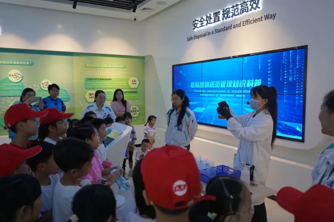 陣地建設(shè)以來,環(huán)保技術(shù)公司開展多樣科普宣教和產(chǎn)學(xué)研活動(dòng),每年接待公眾近1000人次,主要包含企事業(yè)單位、學(xué)校、政府部門等主體單位,講好綠色故事,積極擴(kuò)大環(huán)境宣傳教育的輻射面和影響力。在青少年參觀接待過程中,或介紹危廢處置技術(shù)工藝,或設(shè)置多種實(shí)驗(yàn)與游戲互動(dòng),如開展還原反應(yīng)、酸堿反應(yīng)等小實(shí)驗(yàn),讓學(xué)生從實(shí)驗(yàn)中觀察物質(zhì)的反應(yīng)變化,了解物化處理,并設(shè)置研學(xué)科普課堂,開設(shè)凈水實(shí)驗(yàn)、制作太陽能風(fēng)扇等手工互動(dòng),此外,還開設(shè)垃圾分類、危廢分類等游戲,在環(huán)保工程師的悉心指導(dǎo)下,青少年得以親手接觸到眾多環(huán)保實(shí)驗(yàn)及手工制作,在親眼見證實(shí)驗(yàn)的奧妙、危廢處置的工藝后,不斷踐行環(huán)保理念。
