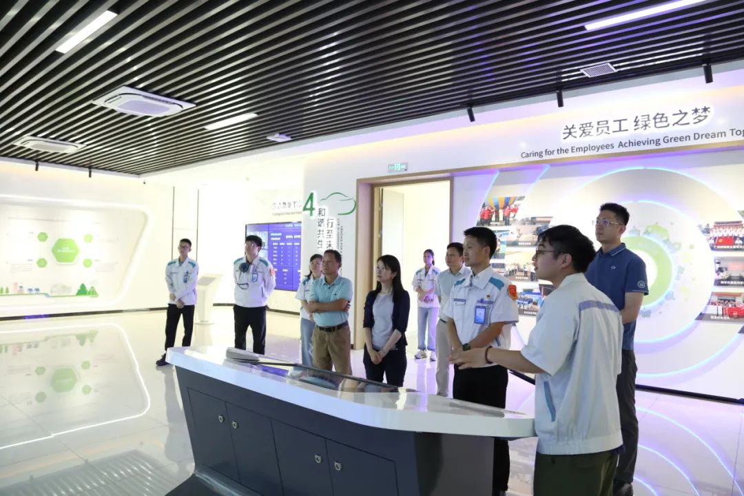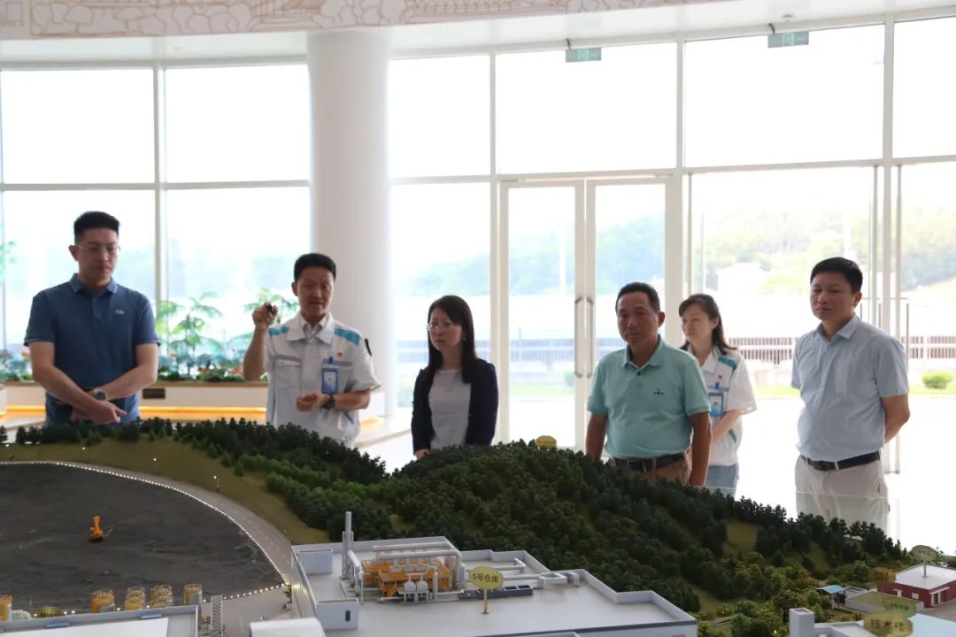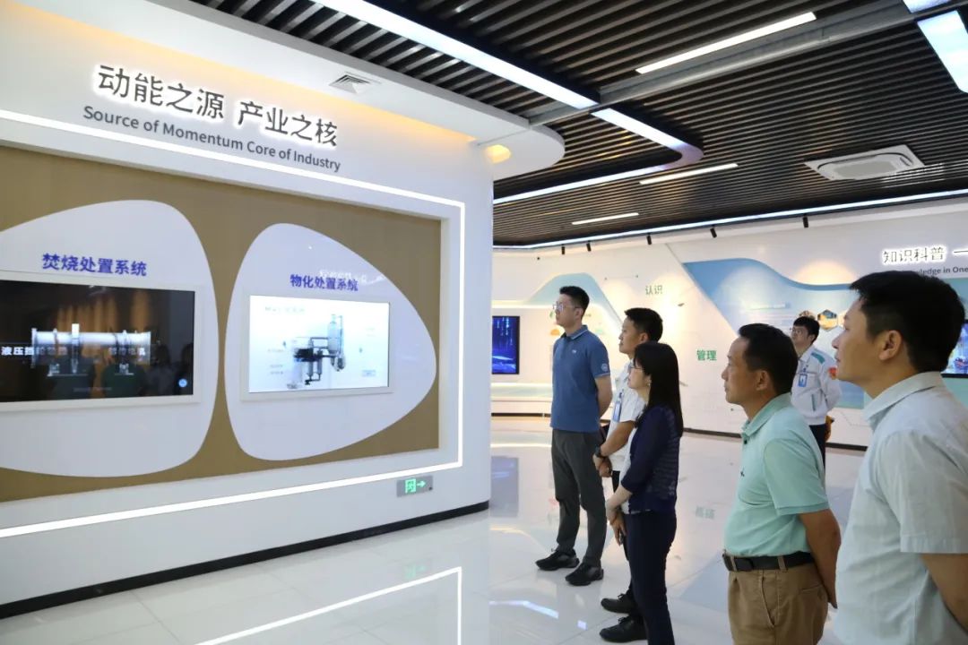 黎慧書記一行首先來(lái)到基地環(huán)??破諒d,參觀展廳綠色生態(tài)區(qū)、工藝科普區(qū)、環(huán)保責(zé)任區(qū)及未來(lái)展望區(qū),通過(guò)沙盤講解、工藝流程展示、屏幕游戲互動(dòng)、處置設(shè)施模型互動(dòng)等,深入了解處置中心布局、項(xiàng)目建設(shè)歷程、危廢處置工藝技術(shù)以及在環(huán)??破辗矫骈_展的工作,對(duì)這個(gè)集功能性、創(chuàng)新性和科普性為一體的現(xiàn)代化展館表示充分肯定。