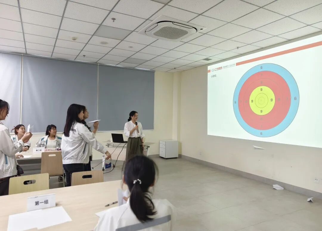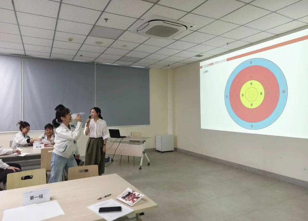 在“放飛煩惱”環(huán)節(jié),每位學(xué)員認(rèn)真寫下三個(gè)近期困擾自己的壓力事件,將紙條折成紙飛機(jī),共同飛向屏幕上的靶心,象征釋放負(fù)擔(dān)、直面挑戰(zhàn)。張老師巧妙運(yùn)用“打氣球”比喻壓力積累過程,深入淺出地講解了壓力過載時(shí)的身心表現(xiàn),幫助學(xué)員識別并正視自身壓力狀態(tài)。在交流分享環(huán)節(jié)中,學(xué)員們積極發(fā)言,分享了通過唱歌、向親友傾訴、享受美食等方式進(jìn)行自我調(diào)適的經(jīng)驗(yàn)。
